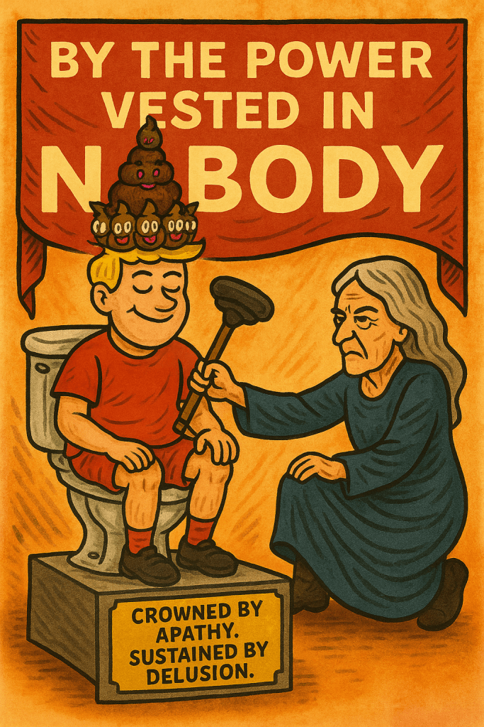 So here we are. Stuck on Turd Island, under the eternal rule of two self-anointed guardians of the bylaws – defenders of dog bans, patrons of petty grievances, and guardians of the sacred hallway paint chart.