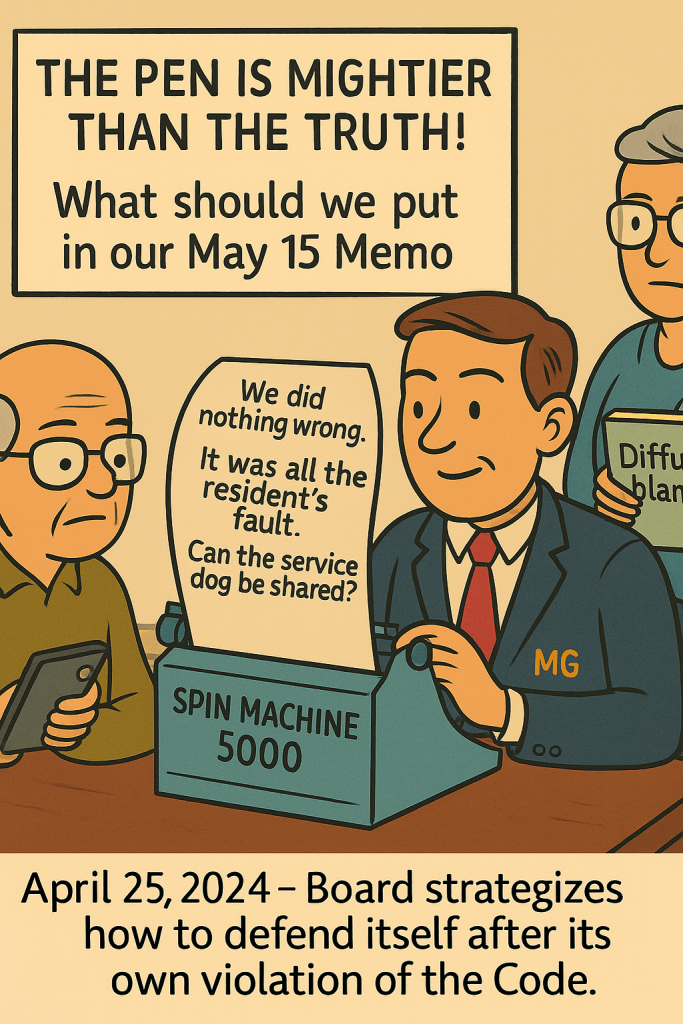 This now-legendary piece of condo correspondence, issued on the official stationery of Denial & Deflection LLP (a.k.a. the Board), reads like a satirical novella co-authored by a gaslighter, a lawyer billing by the hour, and someone deeply allergic to court rulings.
