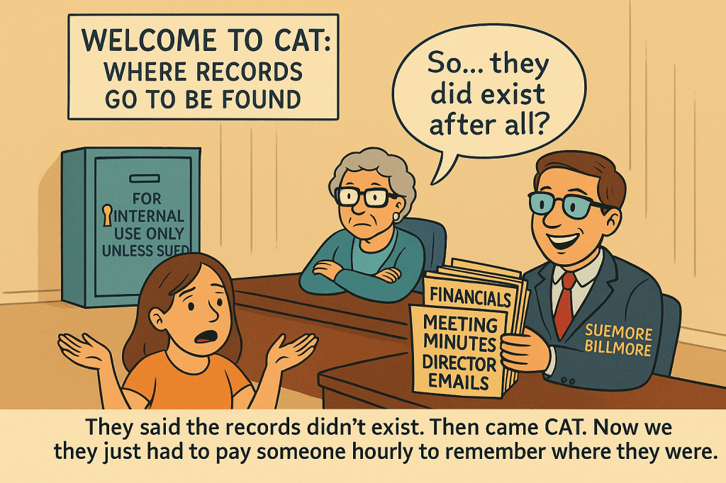 Welcome to Reverse Transparency, where the Board guards documents like they’re state secrets, and the only way to access basic information is to enter the Coliseum of the Condominium Authority Tribunal.