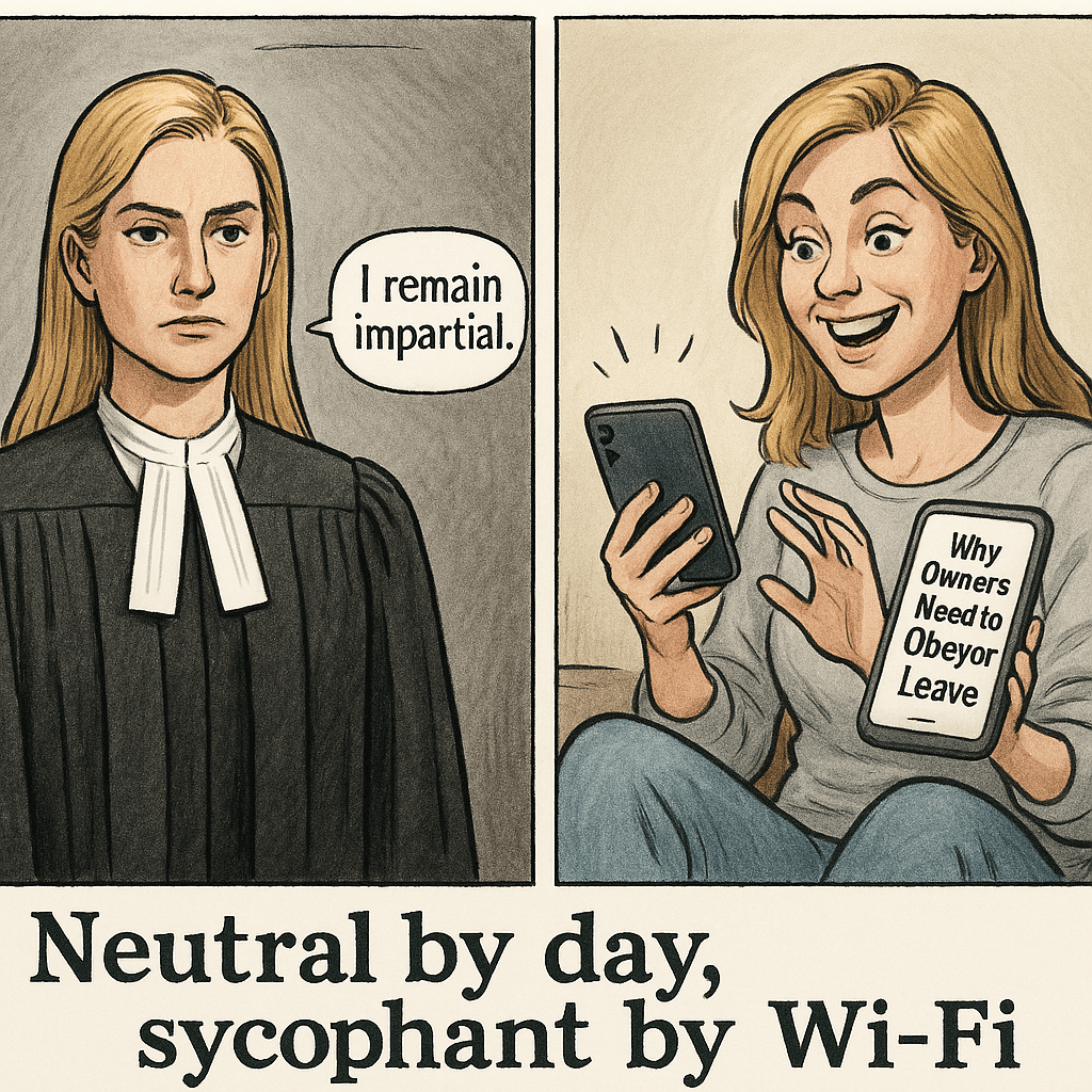In our charming little strata of reality called Condoland™, there’s a special breed of arrogance where a property manager with a certificate that requires (1) a pulse and (2) a high-school diploma, feels fully qualified to override the judiciary with a LinkedIn article.