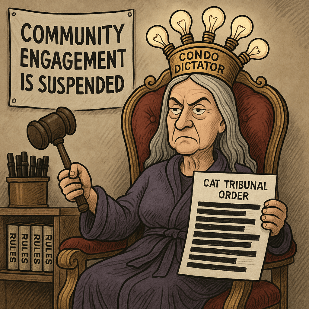 Welcome to the meticulously disorganized world of your average condo overlord – a benevolent tyrant who misquotes bylaws, weaponizes Robert’s Rules, and still manages to blame you for everything.
