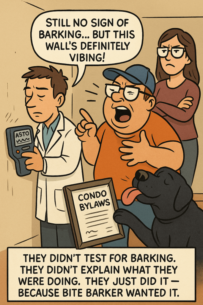 When asked in court why they used a wall transmission test to investigate dog barking, the board replied with the grace of a dropped lasagna: