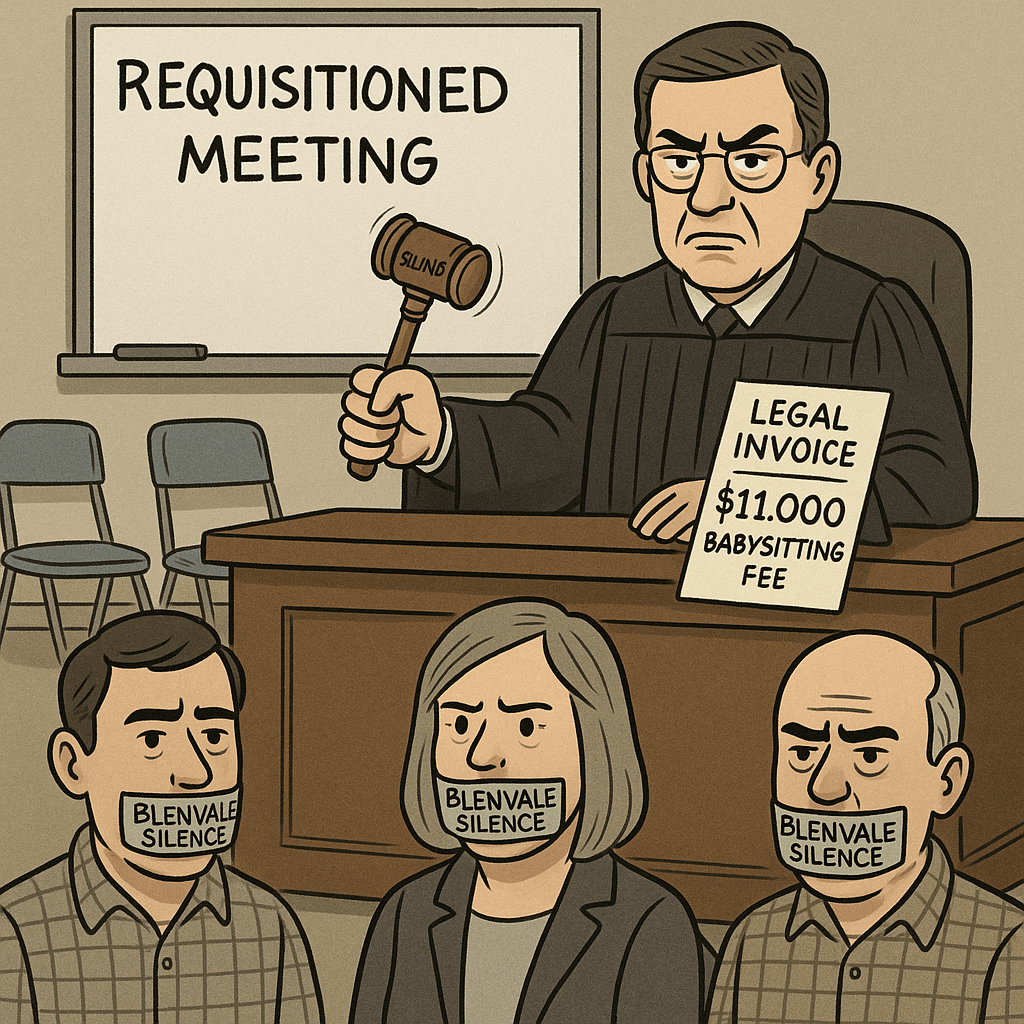 At Blenvale, democracy is a high-risk activity. One that apparently requires not one, but two separate law firms to safely contain.