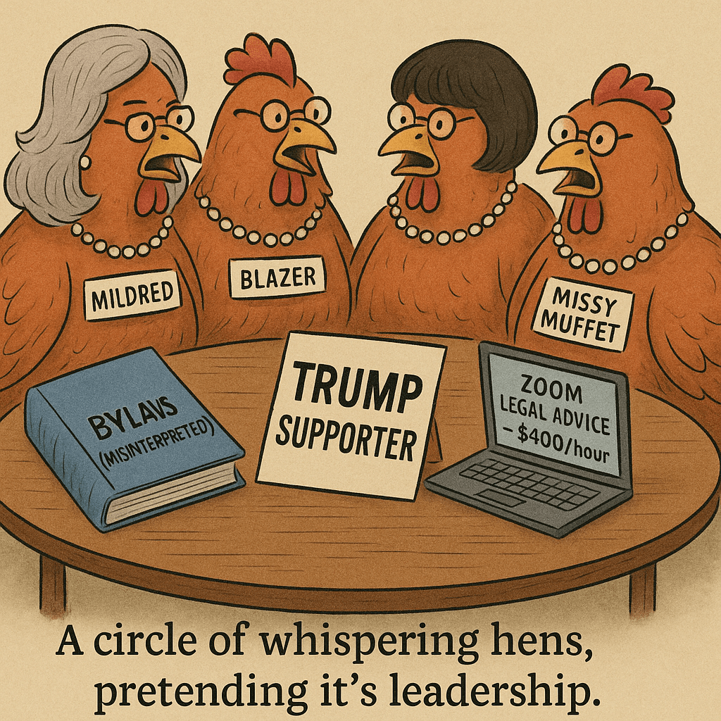 You’re just a circle of whispering hens, pretending it’s leadership.