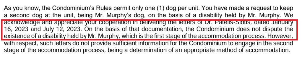 Based on the letters we provided in January and July 2023, they did not dispute that a disability exists.