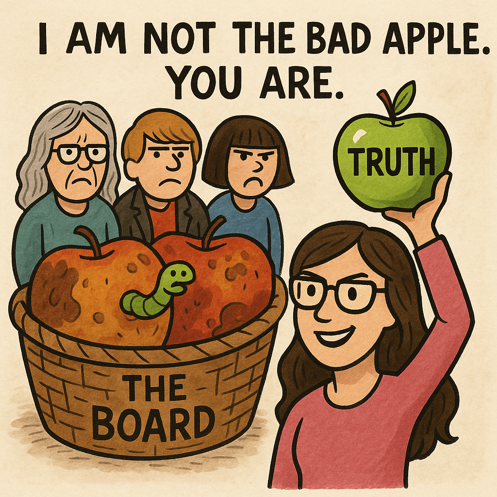 Once again, the Board of Blunders™ would like you to believe that I’m the bad apple. The rotten core. The worm in their carefully polished fruit basket.