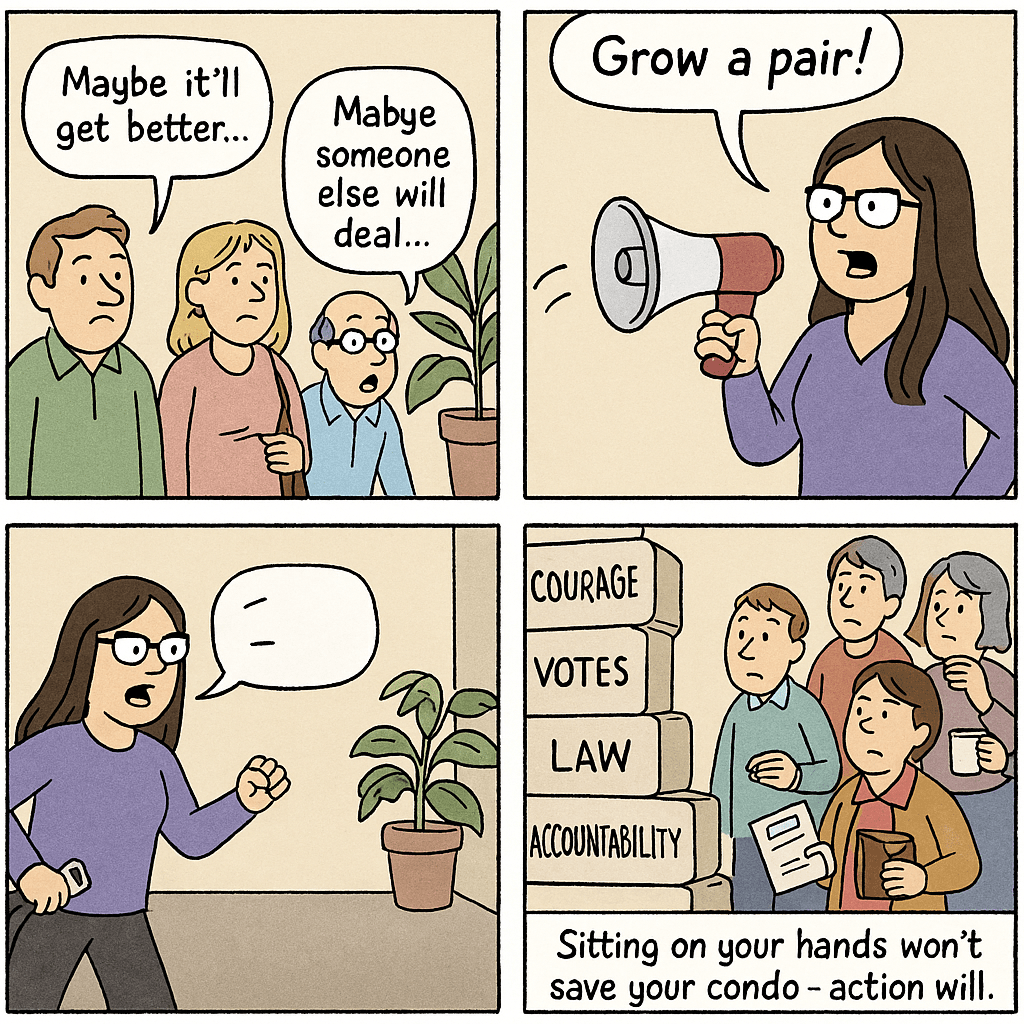Your job as an owner is not to lounge in the cheap seats while others take the hits. Your job is to vote. To act. To hold them accountable. Democracy doesnāt run on sighs and coffee gossip.