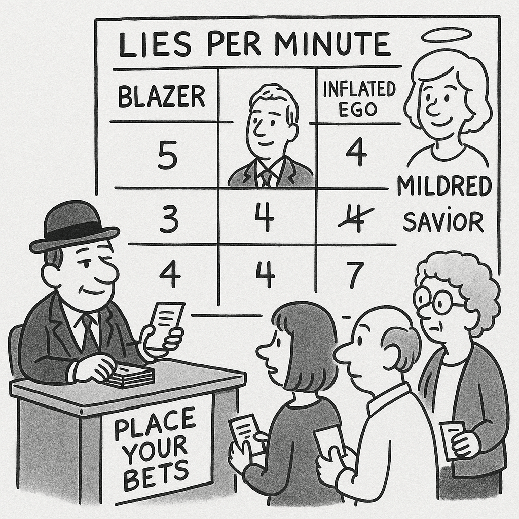 - Odds of Biggest Liar: 2:1 – clear front-runner when the topic shifts to “community spirit” or “her legacy.”