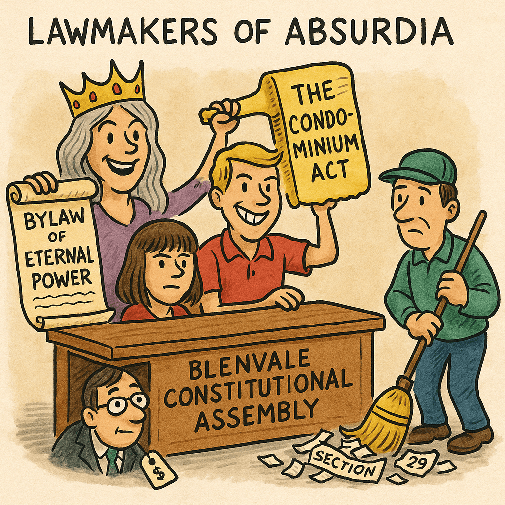 Drafted in secret chambers, stamped with delusion, and blessed by their favourite lawyer-prophet (the same ones who cost us 300,000 dollars) this revolutionary document seeks to abolish the Condominium Act through creative wishful thinking.