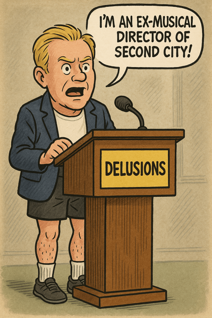 And there he was – Blazer in his winter shorts (he bragged about them), the eternal boy-president, lecturing us all with the authority of a man who’s never once questioned whether he might be the problem.