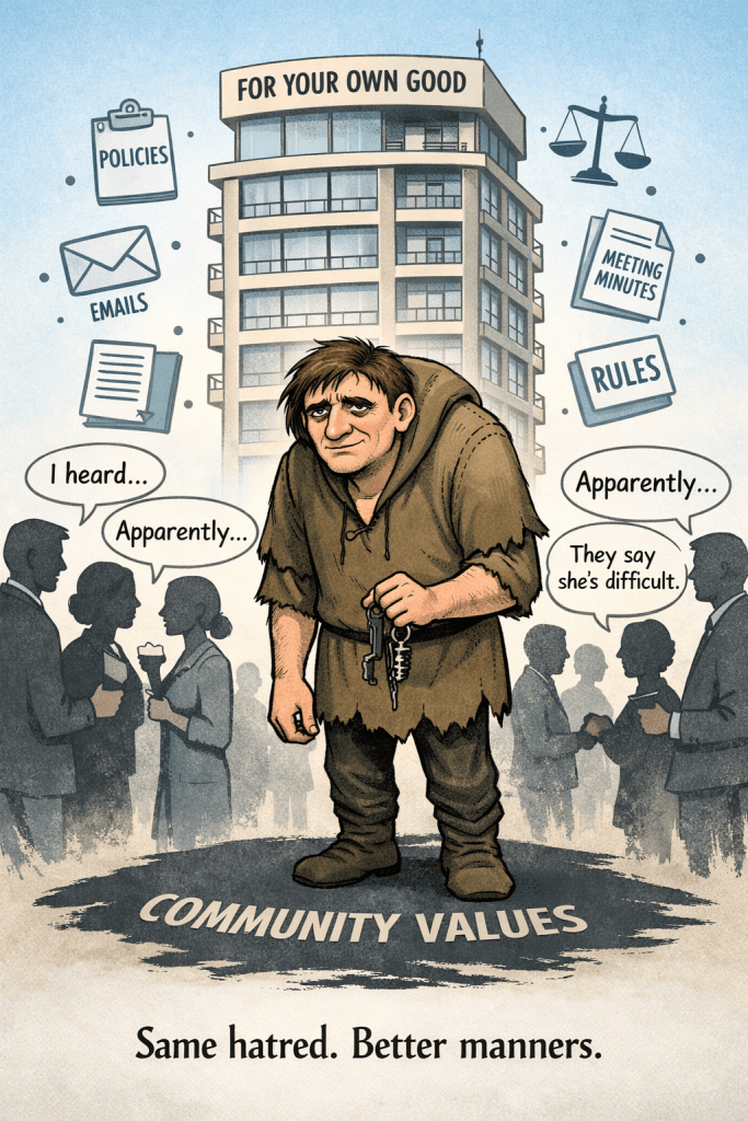 Sometimes it looks like being told – calmly, repeatedly – that your existence is inconvenient.