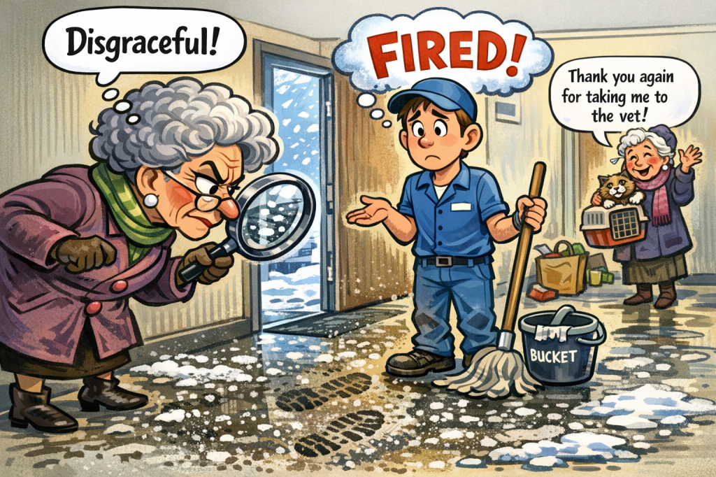 Instead of shrugging and moving on with his mop and bucket, he drove her to the vet with the cat.